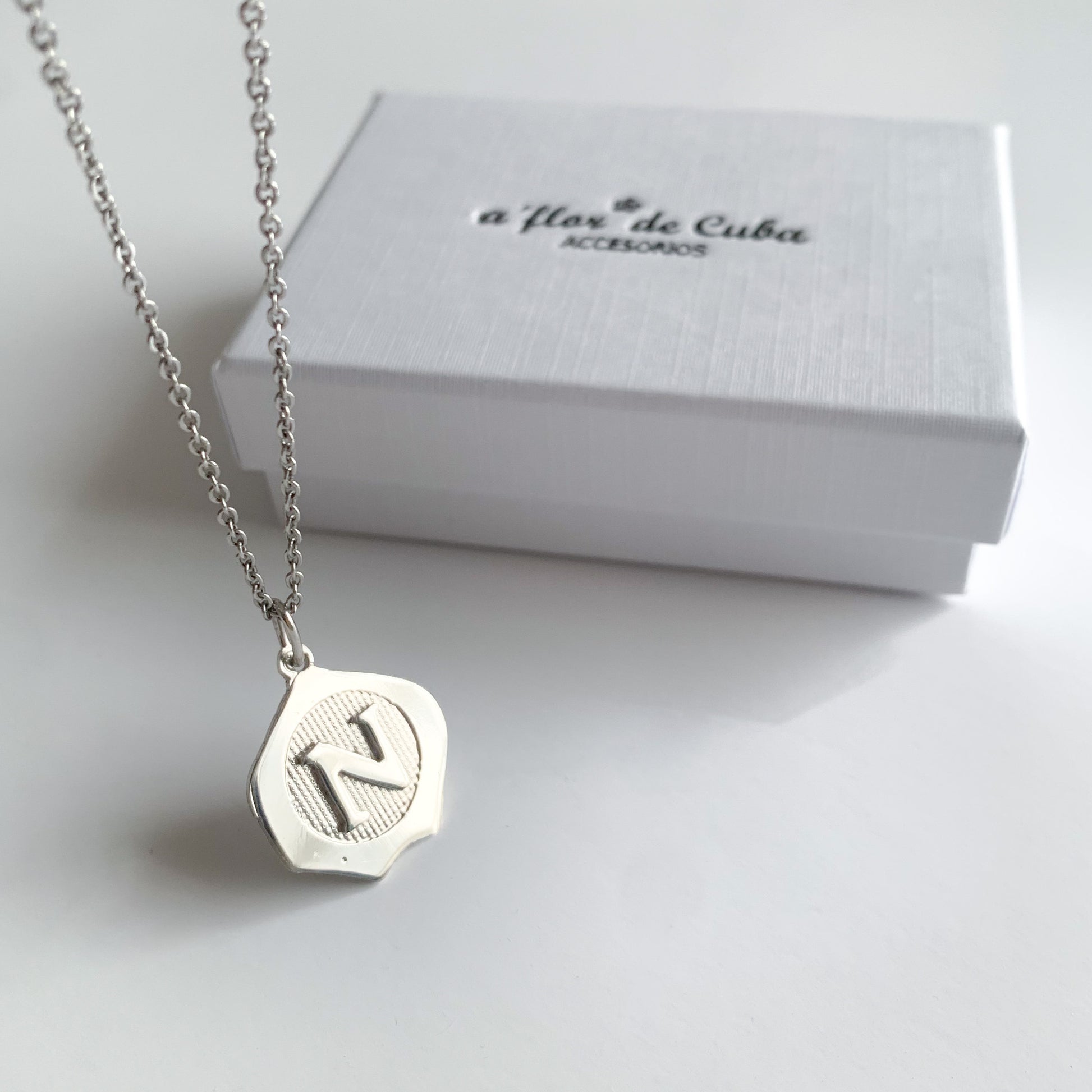 Material: Cadena acero inoxidable, dije baño rodio